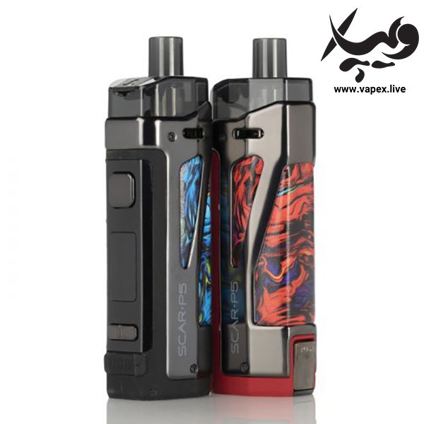 اسموک اسکار پی ۵ ، یک پاد ماد ۸۰ وات ضد آب و ضد ضربه که از باطری خارجی پشتیبانی می کند . با امکان مصرف سالت نیکوتین و جویس معمولی است. این پاد ماد ، از کویل های RPM و RPM2 اسموک پشتیبانی می کند.
