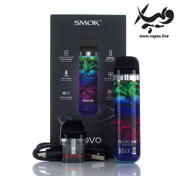 اسموک نوو دو ایکس ، نسخه ی آپگرید شده و ارتقا یافته ی اسموک نوو ی قدیمی است. نسخه ی اول این دستگاه ، به دلیل اندازه کوچک و امکان حمل آسان و همچنین کیفیت بالای طعم دهی در کارتریج های آن ، طرفداران بسیاری داشت اما این دستگاه ، یک مشکل اساسی داشت و آن ، باتری ضعیف دستگاه بود. اکنون اسموک نوو ۲ ایکس با باتری داخلی ۸۰۰ میلی آمپر ، ورودی هوای تنگ تر قابل تنظیم ( برای بهبود طعم دهی و عملکرد دهان به ریه ، شبیه سازی بهتر سیگار ) و پشتیبانی از کارتریج های دو میل مدل قبلی ، به بازار ویپینگ وارد شده تا ایرادات نسخه ی قبل را برطرف کند. در نسخه جدید کارتریج ها قابلیت top to fill اضافه شده است .