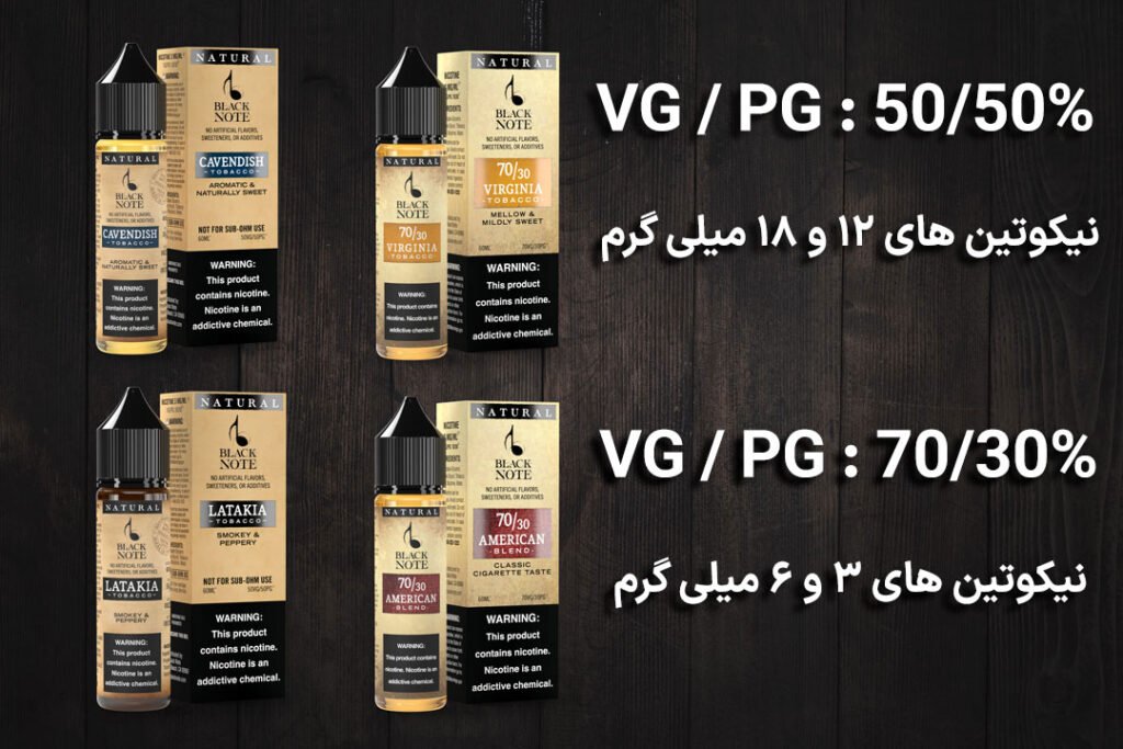 - نسبت VG/PG : 70% / 30% در نیکوتین های ۳ و ۶ میلی گرم