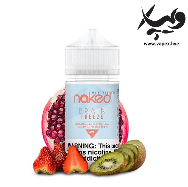 جویس نیکد انار کیوی توت فرنگی Naked STRAWBERRY POM (با اسم قدیمی Brain Freeze) طعم بی نظیر از توت فرنگی های شیرین، مقداری کیوی ترش و انارهای قرمز یاقوتی طعمی خارق العاده رو به وجود میاره که در کنارش طعمی خنکی از منتول احساس میکنید تا حسی خنک در دهان ایجاد کنه میشه گفت این طعم یکی از برجسته ترین جویس های میوه ای دنیا به حساب میاد این ترکیب بی نظیر فقط توسط شرکتی مثل نیکد میتونه تولید بشه که تمامی میوه های خوش طعم و جالب مثل توت فرنگی و کیوی و انار در کنار هم به وجود بیاره .