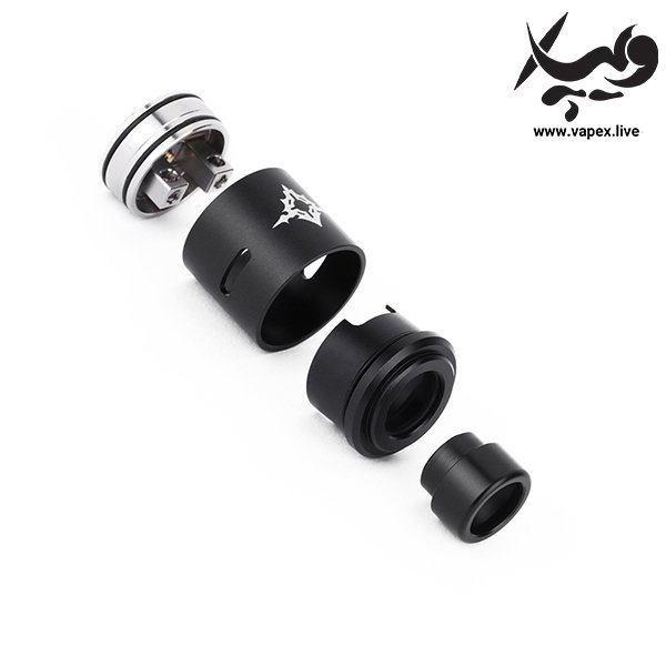 اتومایزر دستگاه ، دارای قطر ۲۴ میلی متر است و در قسمت پایین آن ، یک پیچ کانکتور ۵۱۰ با روکش طلا قرار دارد. دک این اتومایزر ، از نصب همزمان یک وایر یا دو وایر ( سینگل یا جفت ) نیز ساپورت می کند. جنس این اتومایزر ، آلیاژی ترکیبی از SS304 و آلومنیوم است و دو دریچه هوا از قسمت های کناری قرار گرفته اند که به طور کامل ، می توانید میزان هوای ورودی به دک را تنظیم کنید. در بالای اتومایزر ، یک لبی ۸۱۰ Bore پهن قرار گرفته که قابل تعویض با سایر لبی ویپ های موجود با سایز ۸۱۰ است.