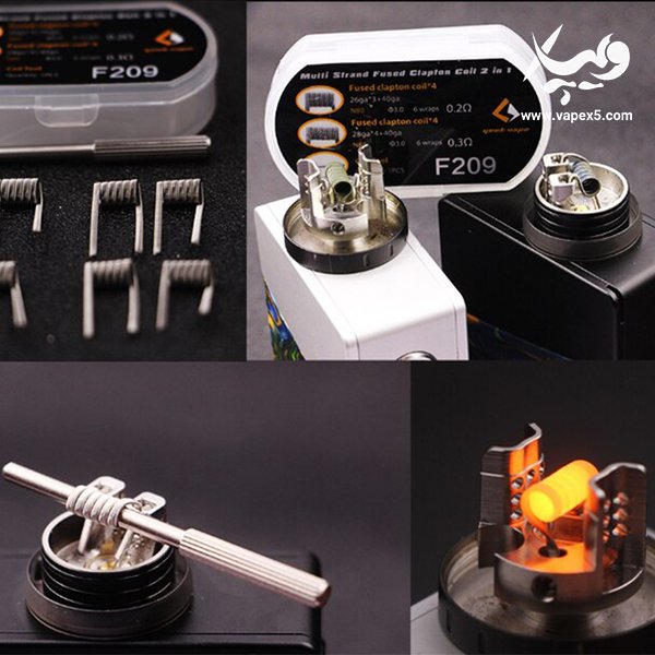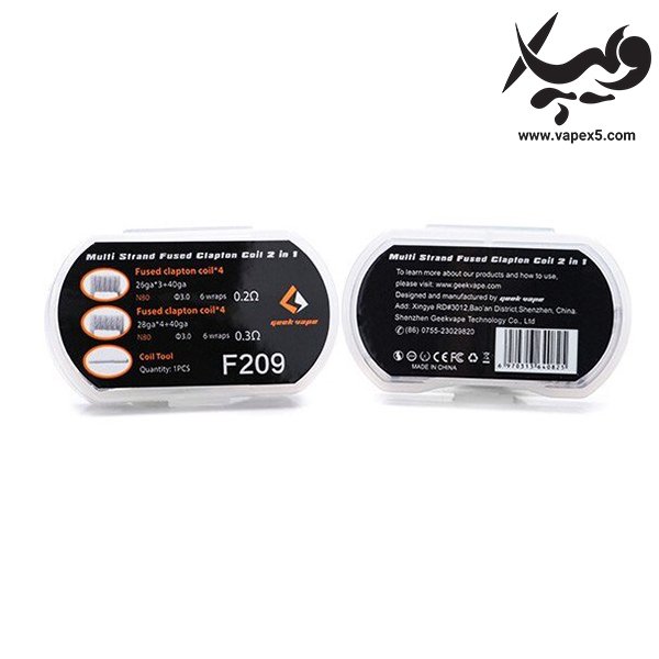 سیم ویپ F209 گیک ویپ ، یک کویل آماده و پیچیده شده با مقاومت پایین است که می توانید از آن در اتومایزر های RTA ، RDA ، RDTA و برخی از کویل های RBA استفاده کنید. این کویل ها ، با بافت Multi Strand Fused Clapton پیچیده شده اند و این ، ویژگی خاص آنهاست. در این روش بافت ، رشته های نازکی از یک سیم از آلیاژ Ni80 به دور رشته ی زخیم تری پیچیده می شوند. این بافت ، سطح روی وایر را به شکلی موج دار و یک نواخت می سازد و مزیت آن ، در گردش بهتر جویس در سطح کویل است. هنگامی که این وایر را ویک می کنید ، جویس جذب شده در پنبه ویپ ، به راحتی در سطح کویل جریان پیدا می کند و طعم دهی بی نظیری قابل انتظار است. با توجه به متریال Ni80 ، همچنین می توانید انتظار رسوبی کم و عمری بالا داشته باشید.