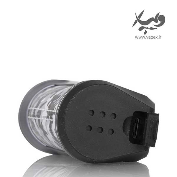 در قسمت بالای این صفحه نمایش ، یک کلید فایر بزرگ و راحت و در پایین نمایشگر ، کلید های تنظیمات قرار دارند. پایین دستگاه ، یک کاور سیلیکونی وجود دارد که با برداشتن آن ، می توانید به پورت شارژ میکرو یو اس بی دسترسی داشته باشید. همچنین با چیپست داخلی AS-100 ، زمان پاسخگویی دستگاه به ۹ میلی ثانیه کاهش یافته و می توانید تجربه ای با کیفیت از ویپینگ داشته باشید.
