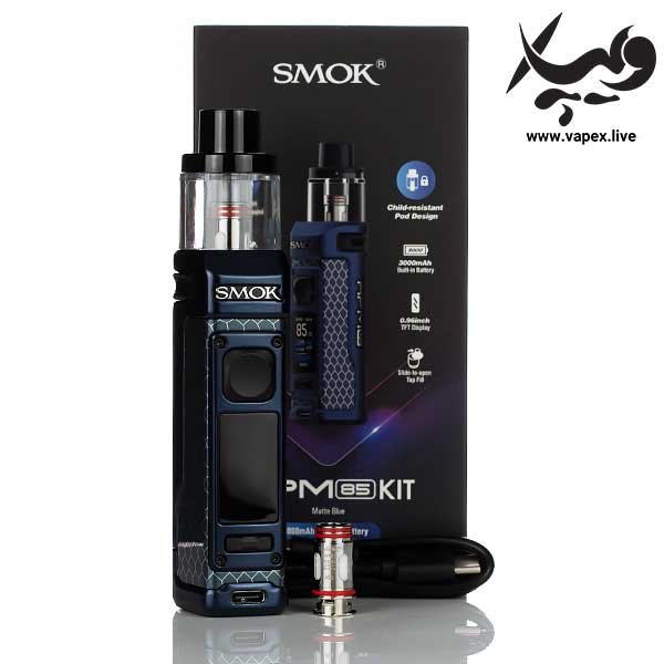 پاد ماد آر پی ام ۸۵ اسموک ، یک پاد ماد ۸۵ وات از کمپانی ویپ اسموک ، با باتری داخلی قدرتمند ، صفحه نمایش و دکمه برای تنظیم توان خروجی است. این پاد ماد را می توانید هم با سالت نیکوتین و هم با جویس ویپ مورد علاقه تان استفاده کنید. این کیت ، با ترکیبی از متریال فلزی Zinc Alloy و پلاستیک با کیفیت ساخته شده و علاوه بر مقاومت بالایی که دارد ، سبک و خوش دست است. در میان پاد ماد ها ، این کیت یکی از خوش دست ترین دستگاه های موجود در بازار است. پترن پوست ماری ( کبرا ) معروف اسموک نیز در سطح بدنه ی این دستگاه به چشم می خورد و زیبایی آن را دو چندان می کند.